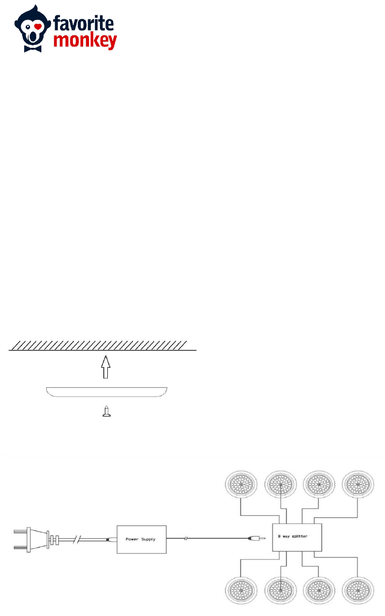 2) When using a single power supply and multiple fixtures, the fixtures are installed in an array format using a