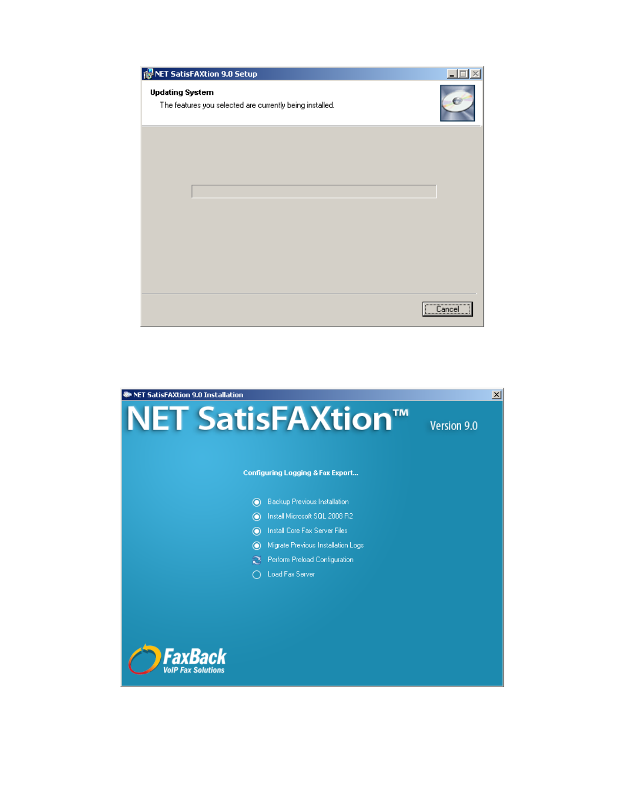 Setup will now create the NET SatisFAXtion service. The service must be configured to log on as a