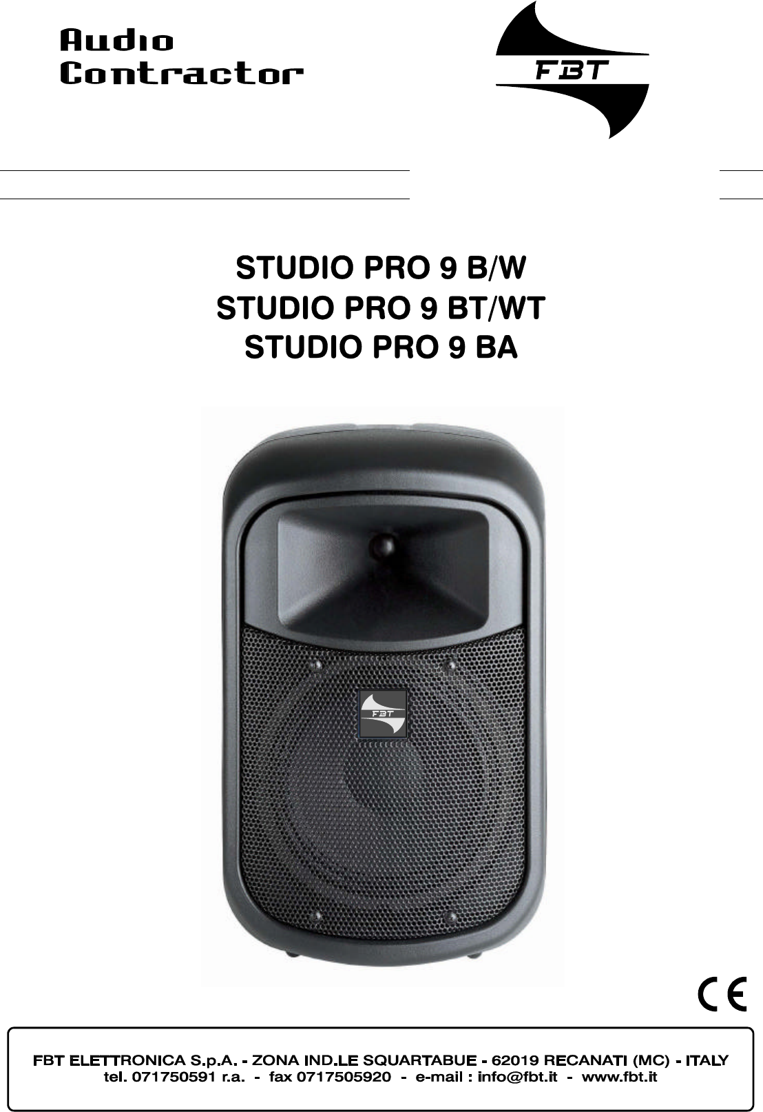 SPECIFICHE TECNICHE TECHNICAL SPECIFICATIONS CARACTÉRISTIQUES TECHNIQUES TECHNISCHE DATEN STUDIO PRO 9 B/W STUDIO PRO 9 BT/WT STUDIO PRO 9 BA vie way voies wege 2 2 2 Amplificatore consigliato Recommended amplifier Amplificateur recommandé Empfohlene Endstufe W rms 120 80 --- Amplificatore interno Built-in amplifier Amplificateur intégré Endstufe intern W rms --- --- 80+20 Potenza lungo termine Long term power W 60 --- --- Potenza breve termine Short term power W 240 --- --- o