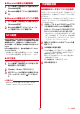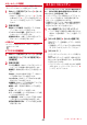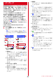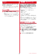 ◆「おサイフケータイ対応サービス」の 利用 おサイフケータイ おサイフケータイ対応サービスをご利用いただくに は、おサイフケータイ アプリよりサービスを設定し てください。 お店などの読み取り機に本端末をかざすだけで、お 支払いやポイントカードなどとして使える「おサイ フケータイ対応サービス」がご利用いただける機能 です。 電子マネーやポイントなどを本端末のICカード内に 保存し、画面上で残高やポイントの確認などができ ます。また、おサイフケータイの機能をロックする ことにより、盗難、紛失時に無断で使用されること を防ぐこともできます。 おサイフケータイの詳細については、ドコモのホー ムページをご覧ください。 ・ おサイフケータイ対応サービスをご利用いただく には、サイトまたはアプリでの設定が必要です。 1 ホーム画面で[健康・ショッピング]e[おサ イフケータイ] おサイフケータイのトップ画面が表示されます。 ・ 初期設定が完了していない場合は、初期設定 画面が表示されます。画面の案内に従って操 作してください。 2 3 ◆ おサイフケータイのご利用にあたっ て サービスを選択 サービスに関