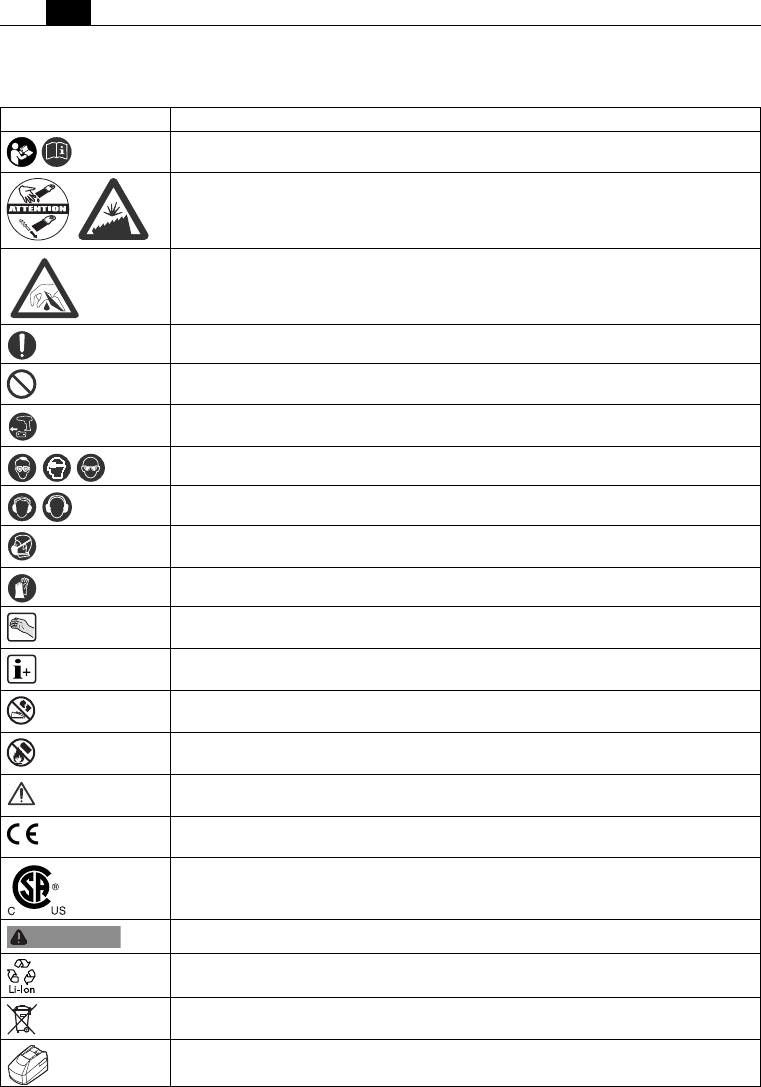 Do not touch the saw blade. Danger of sharp application tools moving back and forth.