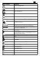 fr Symbole, signe 37 Explication Alimentation en liquide fermée. Démarrer le moteur de carottage. Sens de rotation vers la droite Arrêter le moteur Activer / désactiver l’aimant Le disjoncteur différentiel (*) PRCD est allumé, le témoin de contrôle est allumé en rouge. Le disjoncteur différentiel (*) PRCD est éteint, le témoin de contrôle n’est pas allumé. Produit avec isolation de base et raccordement supplémentaire au conducteur de protection de tous les éléments conducteurs pouvant être touchés.