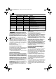 OBJ_BUCH-0000000002-001.book Page 43 Tuesday, July 21, 2009 1:32 PM fi Merkki P1 P2 n0 n1 M... LwA LpA LpCpeak K... a h,D Kansainvälinen yksikkö W W /min /min mm dB dB dB W W min-1 min-1 mm dB dB dB m/s2 m/s2 m, s, kg, A, mm, V, W, Hz, N, °C, dB, /min, m/s2 m, s, kg, A, mm, V, W, Hz, N, °C, dB, min-1, m/s2 43 Kansallinen yksikkö Selitys Työturvallisuus. Lue kaikki turvallisuus- ja muut ohjeet.