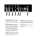 KXR 60 FRONT PANEL FUNCTIONS A. CHANNEL 1 INPUT (1/4" Phone)- Plug-in connection for instruments. This balanced input can handle as much as 8V R.M.S. B. C. CHANNEL 1 VOLUME- This control adjusts the preamplifier gain of channel 1. It works in conjunction with the Master Volume control (item H) to set the overall loudness of the amplifier for Channel 1 only. Being a true “gain” control, it allows for the use of a variety of microphones, keyboards or other instruments with differing output signal levels.