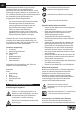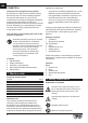 HU Rendkívüli biztonsági előírások • • • • • • • • • Az elektromos vezetéket mindig tartsa távol a készülék mozgó részeitől. Ha a készülék leblokkolna, a készüléket azonal kapscolja ki, és a csatlakozó dugót húzza ki konnektorból. A tartolzékok legnagyobb megengedett fordulatszámával. Ha a készüléket el akarja tenni, a motort kapcsolja ki, és várja meg, amíg a mozgó részek megállnak. Sohase erősítse a szerelőkulcsot a készülékre szíjjal vagy más hasonló tárggyal.