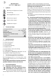 - - - - czony. Użytkownik może kontrolować momenty reakcji lub siły odbicia, w przypadku stosowania odpowiednich środków zabezpieczających. W żadnym wypadku nie wolno umieszczać ręki w pobliżu obracających się narzędzi. Narzędzia mogą zostać odbite w kierunku ręki. Nie wolno ustawiać swojego ciała w strefie, w której urządzenie będzie poruszało się przy odbiciu. Przy odbiciu urządzenie zostaje przyśpieszone w kierunku przeciwnym do kierunku obrotu krążka przy punkcie zakleszczenia.