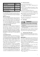 Lydeffektniveau Måleusikkerhedstillæg 95 dB(A) K = 3 dB ADVARSEL Den støj, der opstår under arbejdet, er skadelig for hørelsen. Brug høreværn! Samlet vibration (vektorsum af tre retninger) målt iht. EN 60745: Håndgreb ah = 6,0 m/s² K = 2,0 m/s² Ekstra håndgreb ah = 7,5 m/s² K = 2,0 m/s² De angivne emissionsværdier (vibration, støj) – bruges til sammenligning af maskiner, – men kan også bruges til en foreløbig bedømmelse af vibrations- og støjbelastningen ved brug.