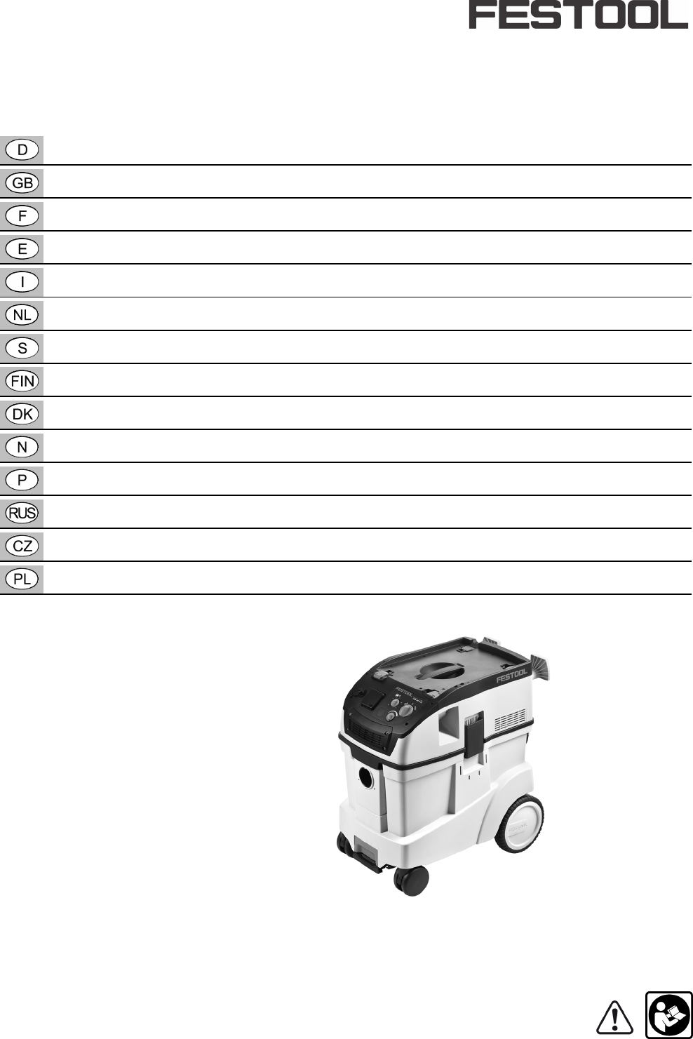 D CTM 48 E LE EC, CTL 48 E LE EC selbst, Ihre Maschine und Ihre Garantieansprüche durch die ausschließliche Nutzung von original Festool Zubehör und Festool Verbrauchsmaterial! Die Bestellnummern für Zubehör und Filter finden Sie in Ihrem Festool Katalog oder im Internet unter "www.festool.com". 11 Entsorgung Werfen Sie das Gerät nicht in den Hausmüll! Führen Sie die Geräte, Zubehör und Verpackungen einer umweltgerechten Wiederverwertung zu. Beachten Sie die geltenden nationalen Vorschriften.