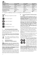Värähtelyn päästöarvo (3-akselinen) ah = 5,5 m/s2 Kahva ah = 8,0 m/s2 Epävarmuus K = 2,0 m/s² Ilmoitetut päästöarvot (tärinä, melu) – ovat koneiden keskinäiseen vertailuun, – soveltuvat myös käytön yhteydessä syntyvän tärinä- ja melukuormituksen alustavaan arviointiin, – edustavat sähkötyökalun pääasiallisia käyttösovelluksia. Arvot voivat kasvaa muiden käyttösovellusten, muiden käyttötarvikkeiden tai riittämättömän huollon takia.