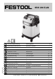 S Tekniska data SRH 204 E-AS Upptagen effekt 350 - 1200 W Anslutningsvärde vid anslutningsdosan för handverktyg max. EG 2400 W CH, DK 1100 W GB 1800 W AUS 1200 W Volymströmning (luft) max. 204 m³/h Undertryck max. 23000 Pa Filteryta 10500 cm² Sugslang Ø 27 mm x 3,5 m Oljudsnivå enligt EN 60704-1 64 dB(A) Behållarrymd 50 l Mått DxBxH 460x440x695 mm Vikt 14,5 kg Nätanslutningskabelns längd 7,5 m Skyddsklass IP X4 De angivna figurerna befinner sig början på bruksanvisningen.