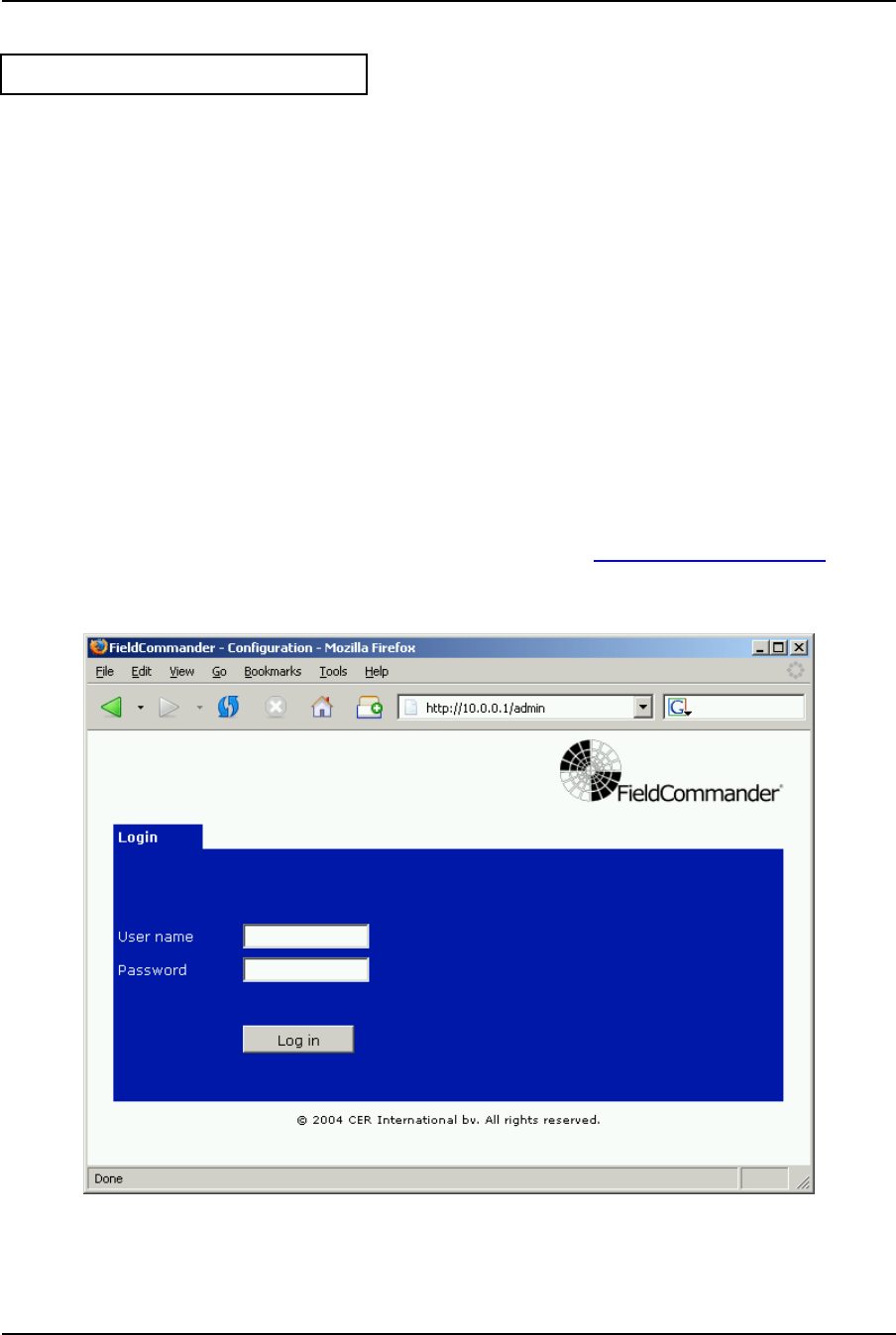 To open the configuration pages of FieldCommander, start your web browser and enter