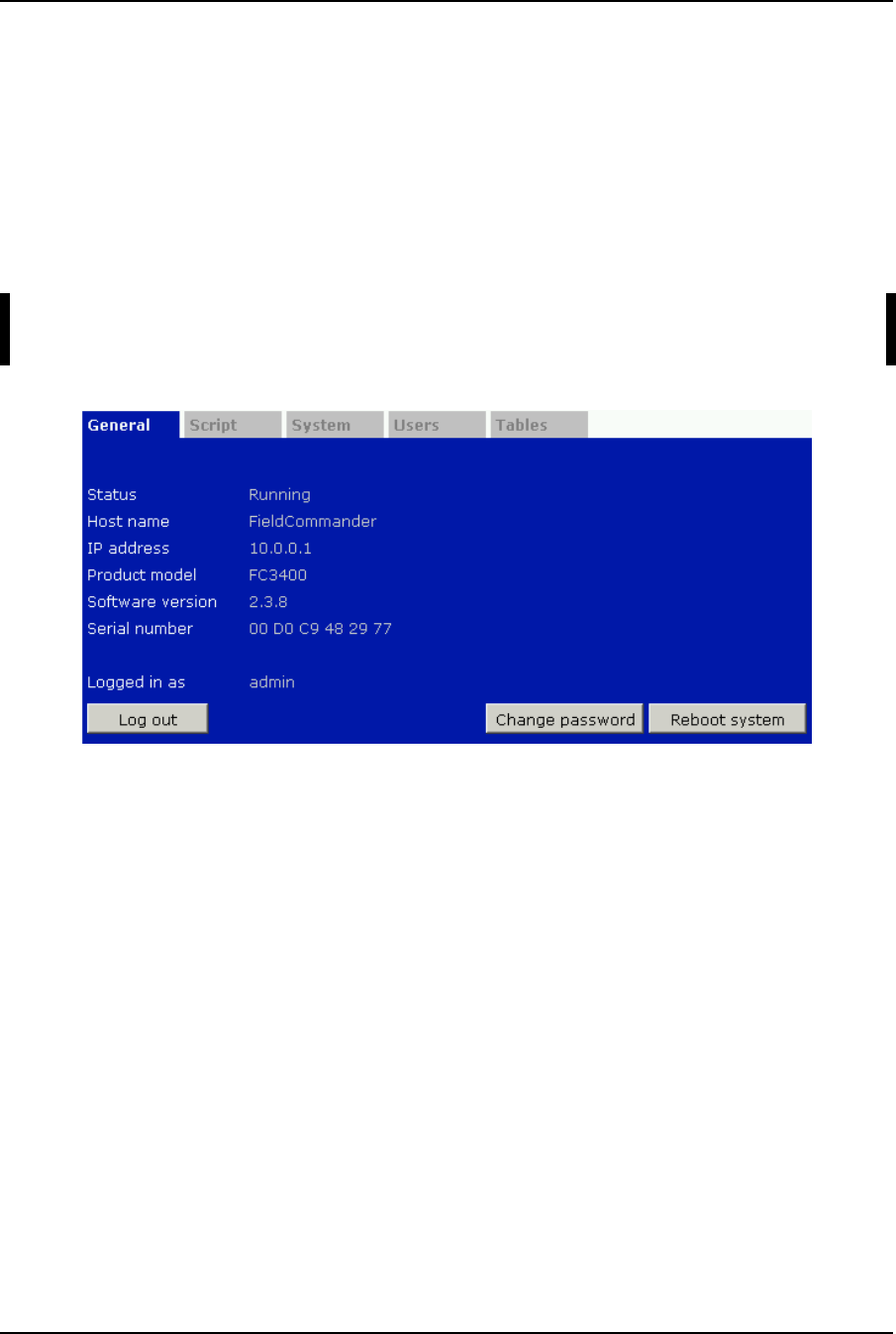 After logging in, the "General" page shows the following information: