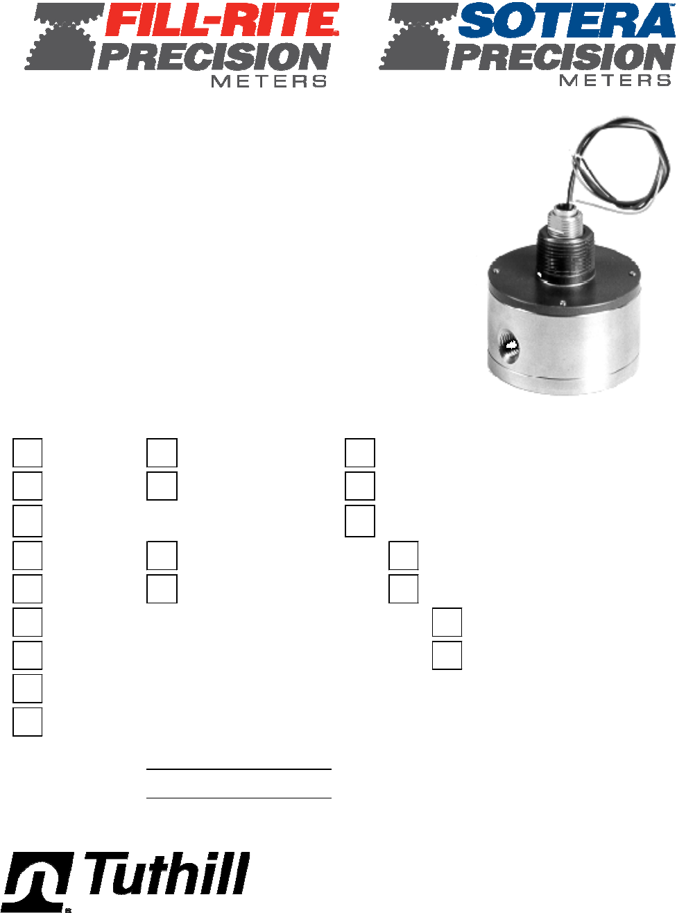 TM Series Electronic FPPMM001, Rev. 2012-03 Installation, Operation & Parts Manual MODEL Internal Pulser Register/Signal Conditioner TM02D Hall Effect none TM03A Reed Switch Signal conditioner: _____________ TM03D Accessories Register/Controller: _____________ TM04A none Remote TM04C Strainer Installed TM04D NEMA 4X encl. TM06A NEMA 7/4X encl. TM06C TM06D Registers, Signal Conditioners and/or Accessories are supported with separate manuals, also supplied with the flow meter.