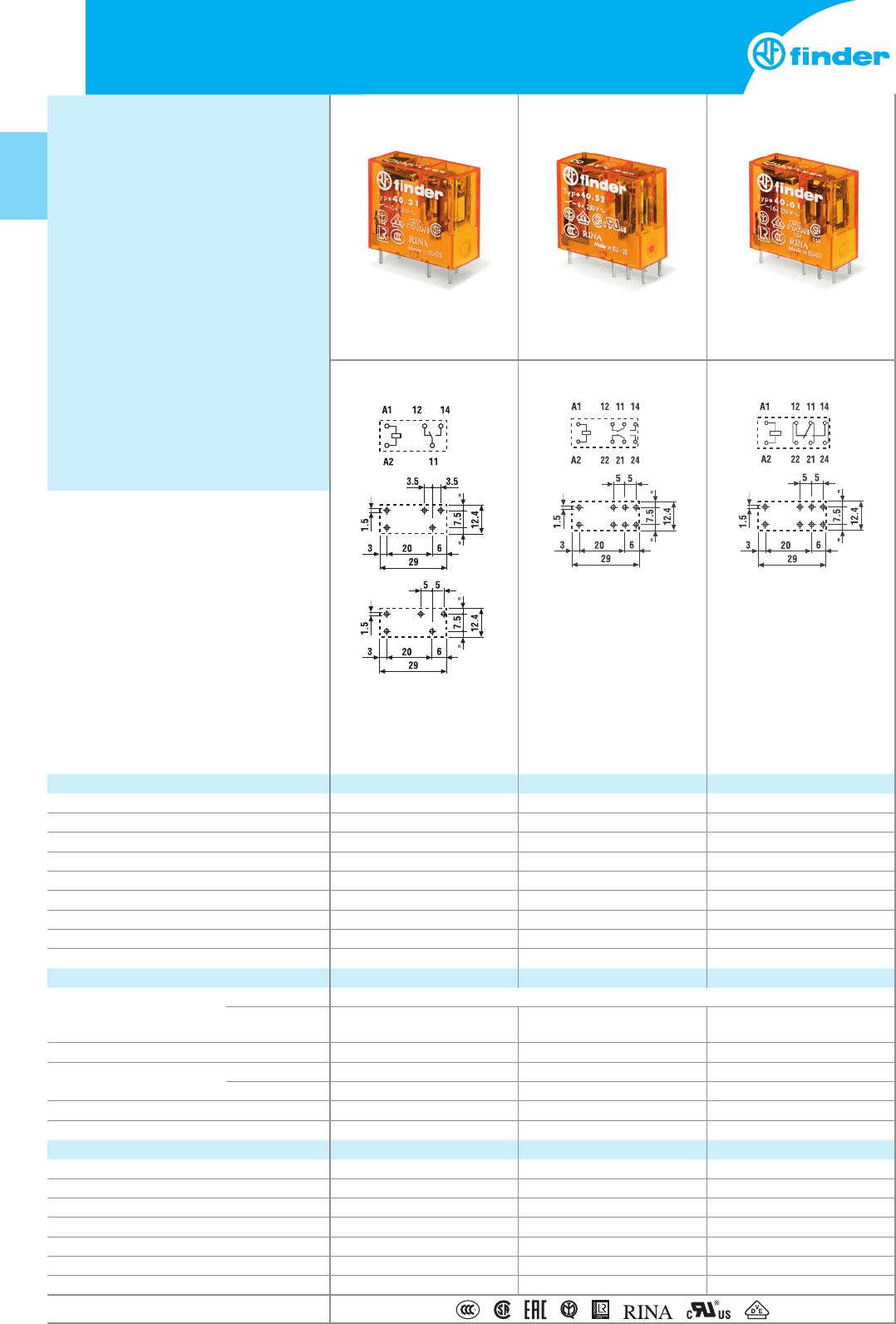 Isolement entre bobine et contacts (1.2/50 s) kV 6 (8 mm) 6 (8 mm) 6 (8mm)