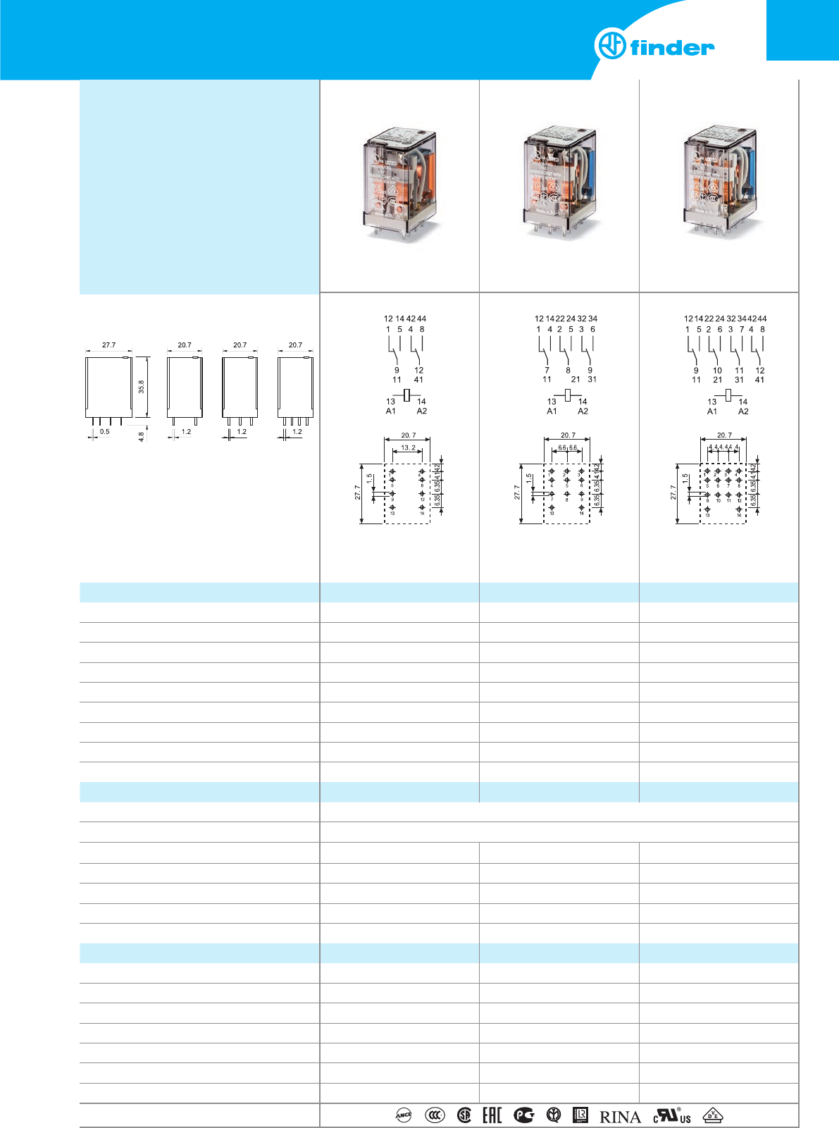 Max. schakelstroom DC1: 30/110/220 V A 10/0,25/0,12 10/0,25/0,12 7/0,25/0,12