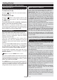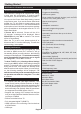 Getting Started First Time Installation - USB Connections Switching On/Off TV Media Playback via USB Input Connect the power cord to the 220-240V AC, 50 Hz. To Switch the TV On Press the “ ” button, P+ / P- or a numeric button on the remote control. To Switch the TV Off Press the “ ” button on the remote control or press the “ ” push button on the TV. The TV will now switch to standby mode. To power down the TV completely, unplug the power cord from the mains socket.