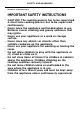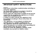SAFETY AND WARNINGS IMPORTANT SAFETY INSTRUCTIONS Installation ● ● ● ● ● ● ● Read these instructions carefully before installing or using this appliance. No combustible material or products should be placed on this appliance at any time. Please make this information available to the person responsible for installing the appliance as it could reduce your installation costs. In order to avoid a hazard, this appliance must be installed according to these instructions for installation.