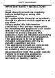 SAFETY AND WARNINGS IMPORTANT SAFETY INSTRUCTIONS ● ● ● ● ● ● ● ● ● ● This appliance can be used by children aged from 8 years and above, and persons with reduced physical, sensory or mental capabilities or lack of experience and knowledge, if they have been given supervision or instruction concerning the use of the appliance in a safe way and they understand the hazards involved. Cleaning and user maintenance shall not be done by children without supervision.