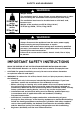 TABLE DES MATIÈRES Introduction FR 27 Consignes de sécurité et mises en garde 28 Instructions d’installation 30 Instructions d’utilisation 42 Nettoyage et entretien 43 Pièces et accessoires 45 Service et garantie 46 IMPORTANT! CONSERVEZ CES INSTRUCTIONS Les modèles illustrés dans ce guide d’utilisation peuvent ne pas être disponibles dans tous les pays et sont sujets à modifications sans préavis.