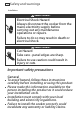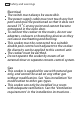 Safety and warnings 9 The use of a gas cooking appliance results in the production of heat and moisture in the room in which it is installed. Ensure the kitchen is well ventilated. Keep natural ventilation holes open or install a mechanical ventilation device (mechanical extractor hood). Prolonged intensive use of the appliance may call for additional ventilation, for example opening of a window, or more effective ventilation, for example increasing the level of mechanical ventilation where present.
