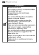 32 Using your warmer drawer Before using your warmer drawer, please: Condition it by heating it on maximum for about two hours. Wipe it out with a damp cloth and mild detergent, and dry thoroughly. Important! Always start with hot food. Safe food handling: leave food in the oven for as short a time as possible before and after cooking or defrosting. This is to avoid contamination by organisms which may cause food poisoning. Take particular care Fig.