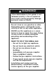 SAFETY AND WARNINGS ! WARNING! Explosion Hazard Failure to follow this advice may result in injury or death. • If you smell gas, do not use the appliance. Open a window or door to let the gas escape, then follow the guidance on the inside front cover of this manual. • Do not use water on grease fires. A violent steam explosion may result. • Turn all burners off, then smother fire or flame or use dry chemical or foam-type extinguisher. • Do not heat unopened food containers, such as cans.