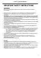 SAFETY AND WARNINGS IMPORTANT SAFETY INSTRUCTIONS WARNING! When using this appliance always exercise basic safety precautions including the following: ●● ●● ●● ●● ●● ●● ●● ●● ●● ●● ●● ●● ●● ●● ●● ●● Children should be supervised to ensure that they do not play with the appliance. Cleaning and user maintenance shall not be undertaken by children without supervision.