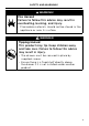 SAFETY AND WARNINGS Safety z z z z z Do not touch hot surfaces. Use handles or knobs. Do not sit or lean on the appliance. Damage to the surface of the glass may cause it to shatter. Do not store hazardous objects that can explode like containers with gas or air chambers (e.g spray cans). Do not immerse cord, plug or other parts in water or other liquid to protect against electrical shock. Do not let the cord hang over the edge of table or counter, or in a heated oven.