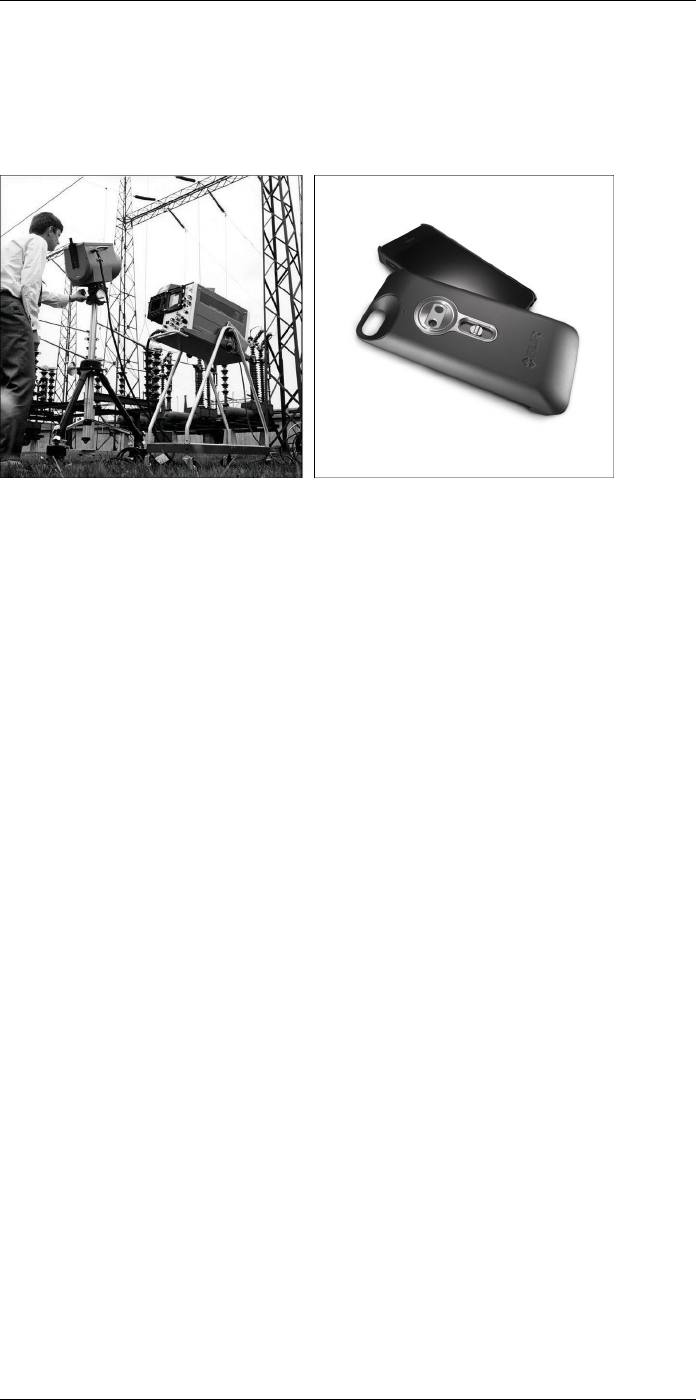 attachment (6 kg/13 lb.) can be seen. RIGHT: FLIR One, which was launched in January 2014, is a slide-