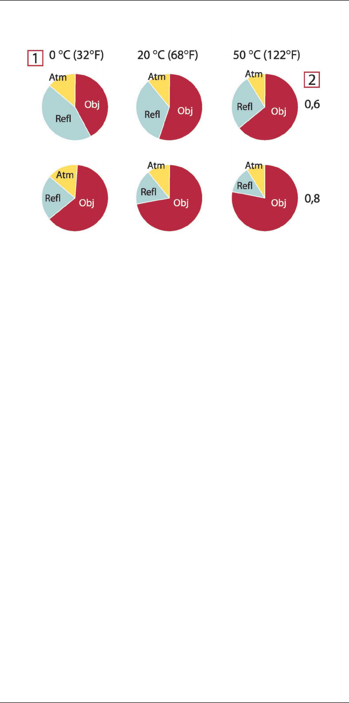 era). 1: Object temperature; 2: Emittance; Obj: Object radiation; Refl: Reflected radiation; Atm: atmos-