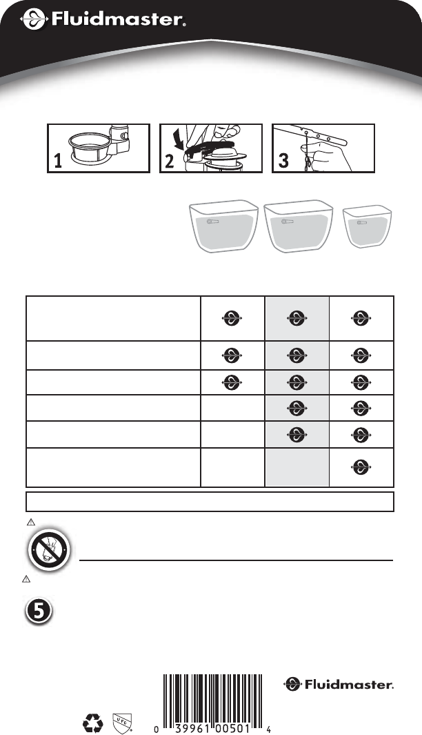 or repairing. Fluidmaster will not be responsible or liable for use of non-Fluidmaster parts during installation or repair.