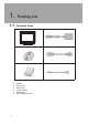 1. Packing List 11111 Standard Items a. d. b. e. c. f.