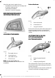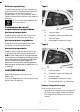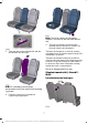 1. Trek aan de hendel aan de achterzijde van de middelste stoel en duw de rugleuning omlaag tot deze wordt vergrendeld. Stoelen naar voren kantelen N.B.: De middelste stoel moet in het stoelframe van de stoel rechts worden opgeborgen voordat de stoel rechts wordt ingeklapt. 2. Trek aan de riem en til het zitkussen rechts op. 1. Trek aan het koord en til het zitkussen op. 2. Til de hendel op en duw de rugleuning omlaag tot deze wordt vergrendeld.