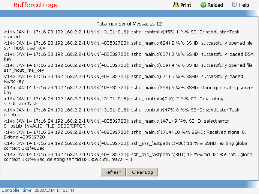 Number of log messages displayed: For the buffered log, only the latest 128 entries are displayed