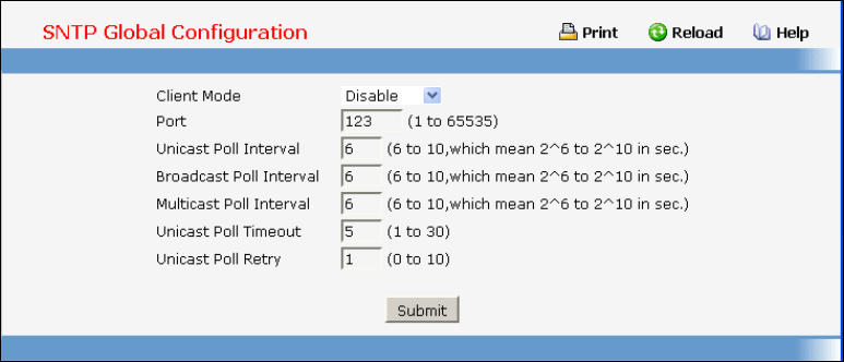 • Disable - SNTP is not operational. No SNTP requests are sent from the client nor are any