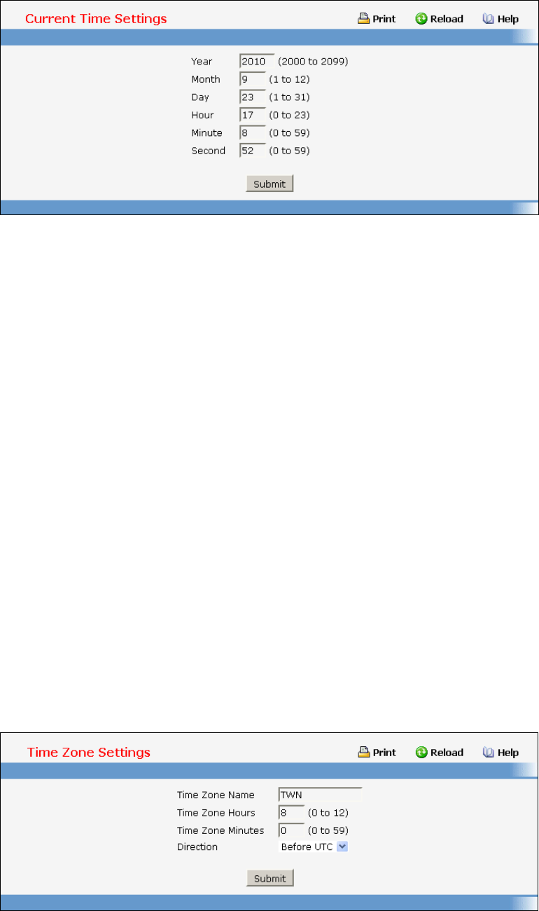 updates from a time server. Maintaining an accurate time on the switch enables the system log to record