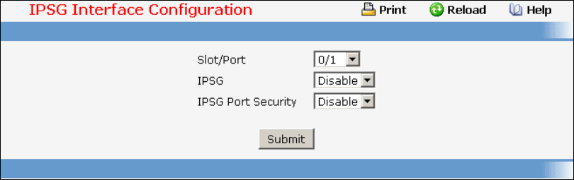 IPSG Port Security - Enables or disables the IPSG Port Security on the selected interface. If IPSG