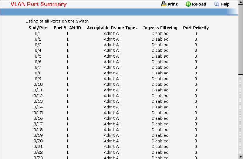 Port Priority - Specifies the default 802.1p priority assigned to untagged packets arriving at the port.