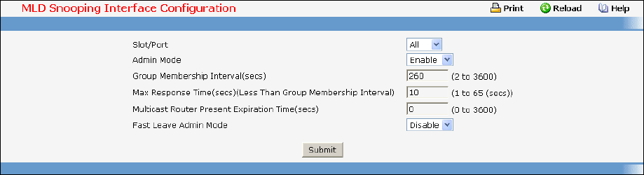 Admin Mode - Select the interface mode for the selected interface for MLD Snooping for the switch