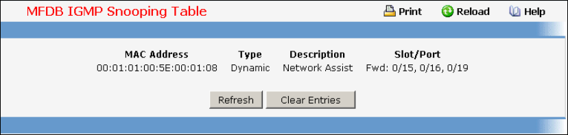 Clear Entries - Clicking this button tells the IGMP Snooping component to delete all of its entries from