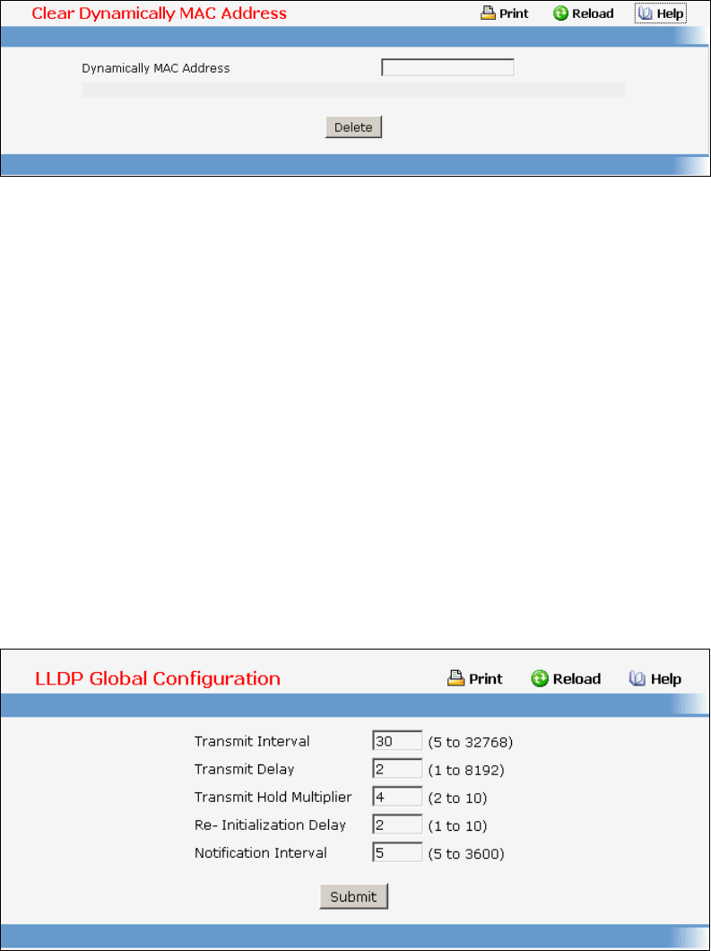 Dynamically MAC Address - Accepts user input for the MAC address to be deleted. The factory