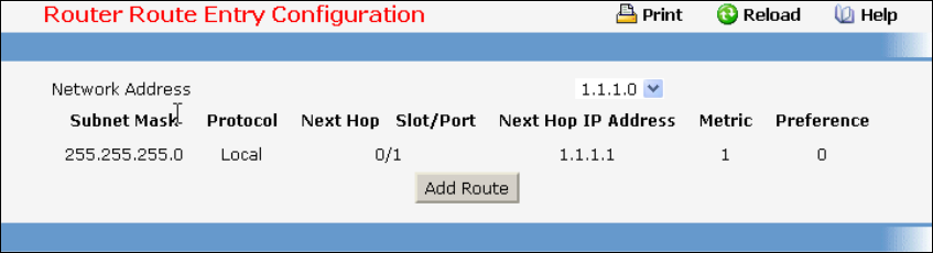 interface. Routing interfaces are created on the IP Interface Configuration page. Valid next hop IP