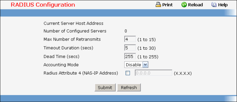 Dead Time - The dead time value, in seconds. The valid range is 1 - 255. - Selects if the RADIUS
