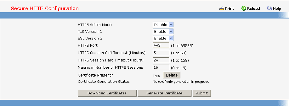 HTTPS Admin Mode - This field is used to enable or disable the Administrative Mode of Secure