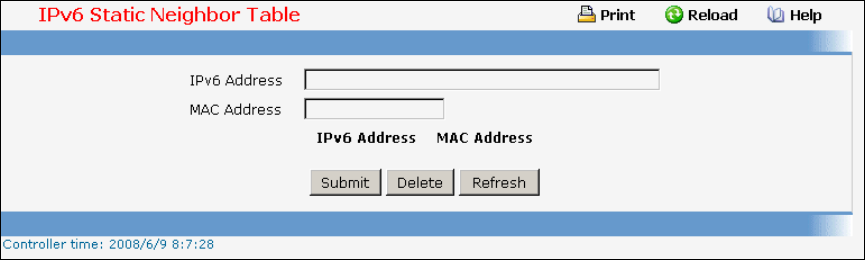 11.6.6 Viewing IPv6 Static Neighbor Table Information Page