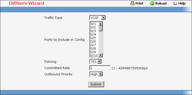 Ports to Include in Config - List the ports which can be configured to support a DiffServ policy. The