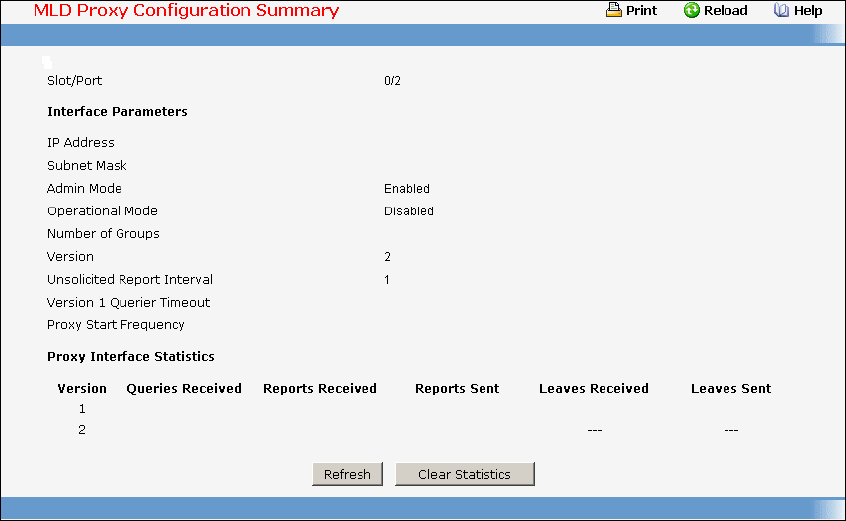 Clear Statistics - Clear the MLD Proxy interface statistics.