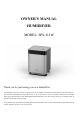 OWNER’S MANUAL HUMIDIFIER MODEL: SPS-111W Thank you for purchasing your new Humidifier. The humidifier helps you to restore an appropriate level of humidity and eliminate the discomfort associated with dry air. The ventilation system diffuses water in the form of a cool or warm vapor in order to provide the desired level of humidity. This vapor is characterized by a mist discharged through the diffusion nozzle. We wish you many years of healthy indoor air with this efficient and effective product.