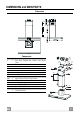 INSTALLATION Wall drilling and bracket fixing ÷1/16" 24" 12a 4"9/16 4"9/16 12"5/8 11 X 7.2.1 Wall marking: • Draw a vertical line on the supporting wall up to the ceiling, or as high as practical, at the center of the area in which the hood will be installed. • Draw a horizontal line at 24” above the hob. • Place bracket 7.2.1 on the wall as shown about 1/16” from the ceiling or upper limit aligning the center (notch) with the vertical reference line.