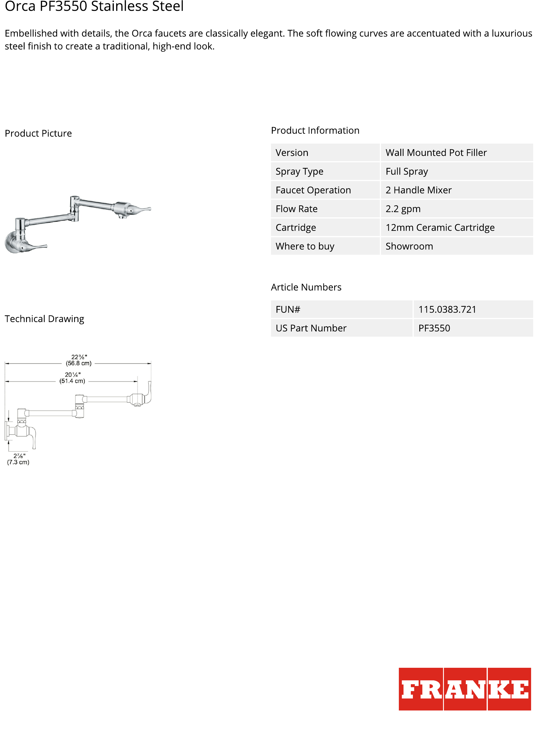 Single Hole Wall Mount Pot Filler with Full Spray, Durable Brass and 180° Swivel Spout